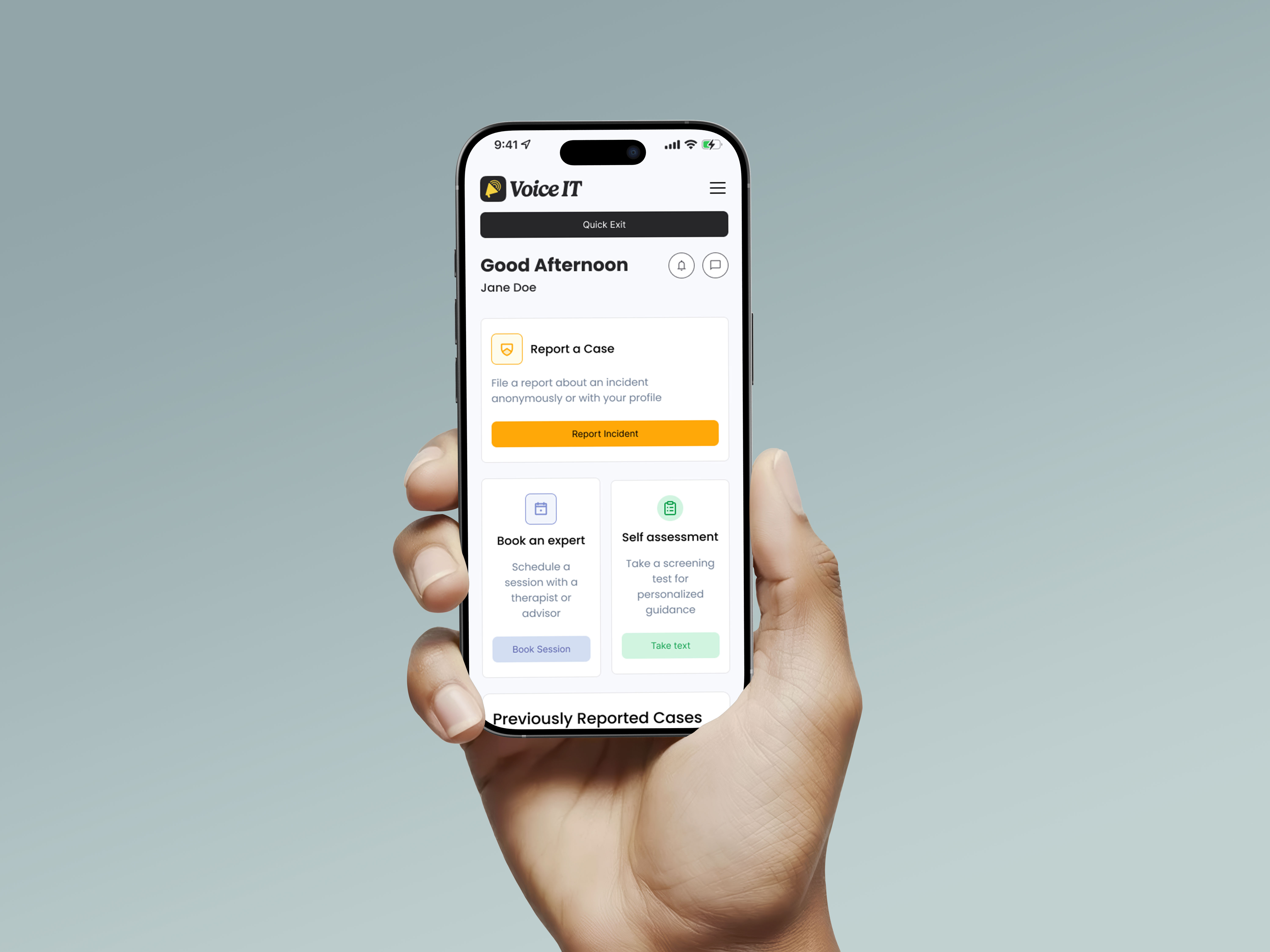 VoiceIT is more than a platform—it's a movement toward empowering SGBV survivors with the tools, resources, and professional support they need to heal and seek justice.